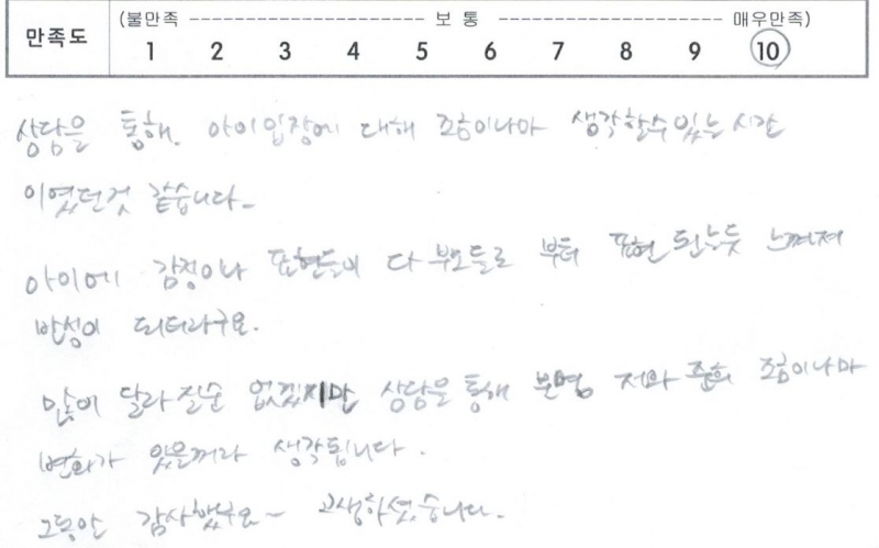 상담을 통해 아이입장에 대해 조금이나마 생각할 수 있는