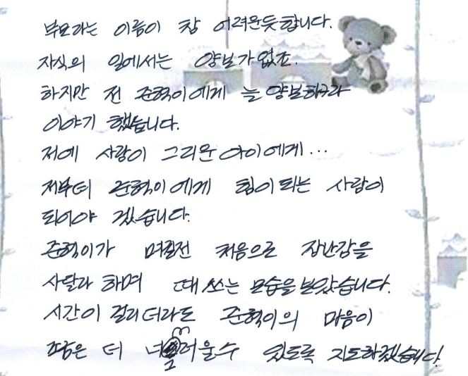 저부터 준혁이에게 힘이 되는 사람이 되어야겠습니다.