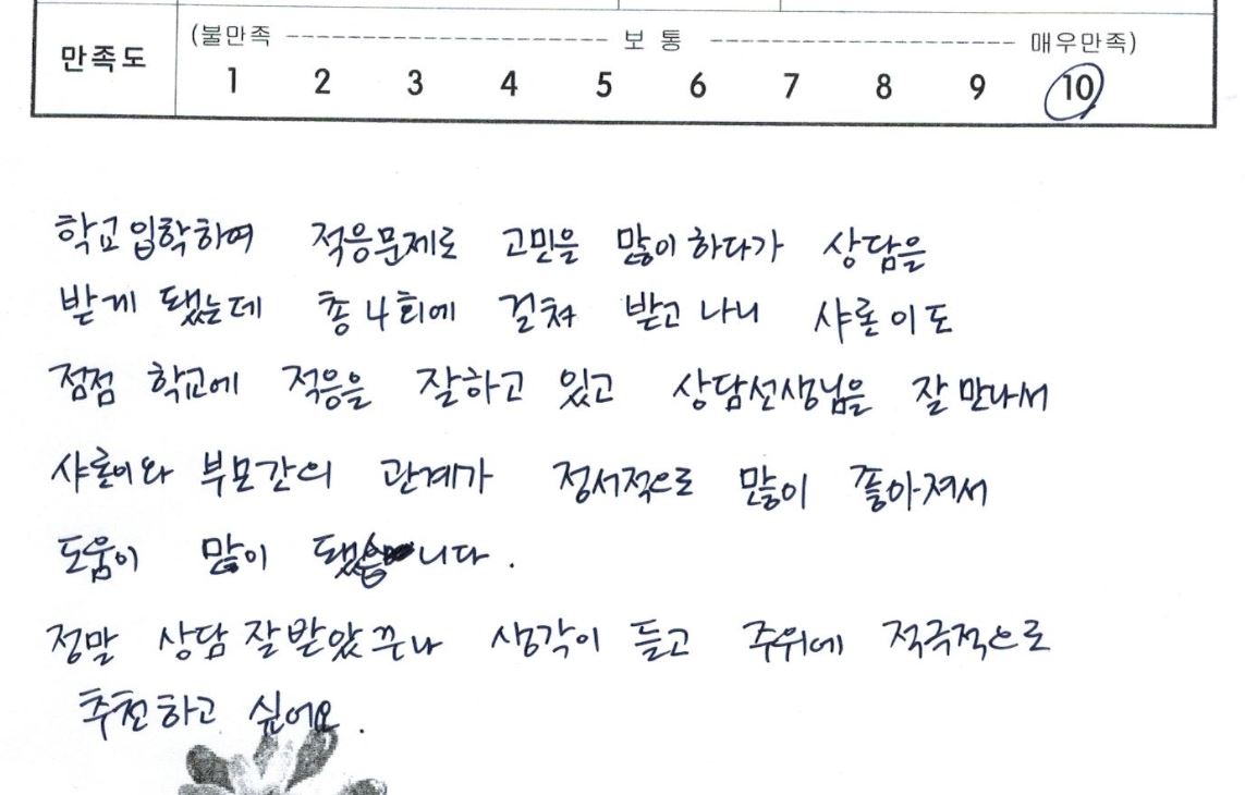 상담선생님을 잘 만나서 아이와 부모간의 관계가