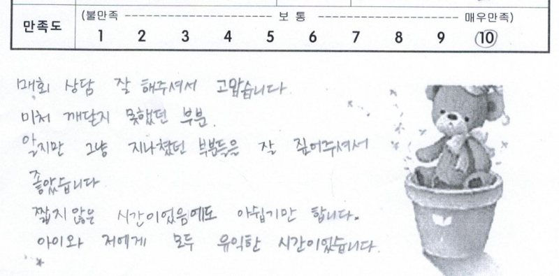 매회 상담 잘 해주셔서 고맙습니다.