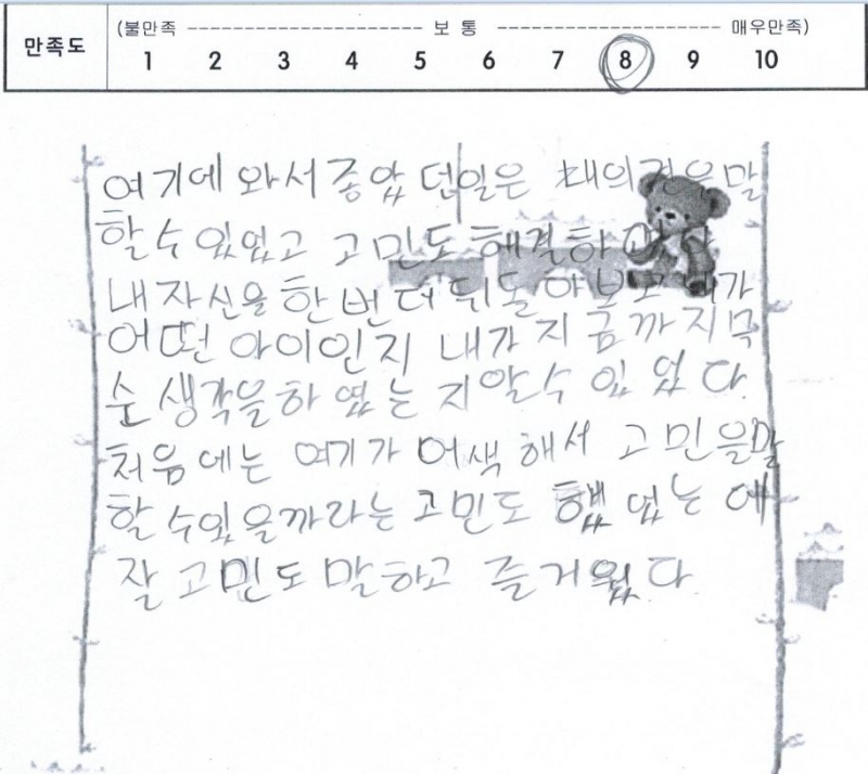 여기에 와서 좋았던 일은 내의견을 말할 수 있었고 고민도 해결하였다.