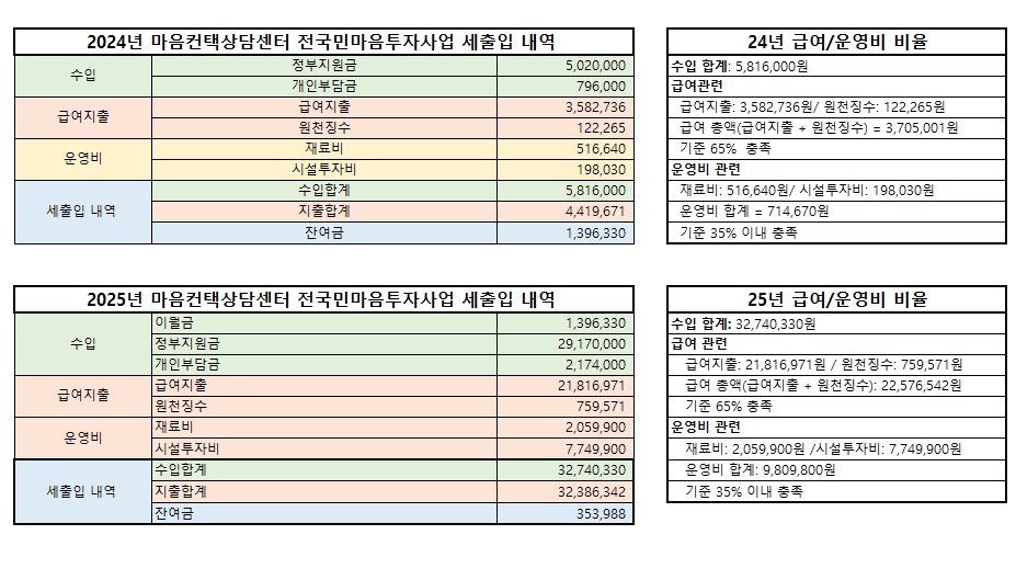 2024-2025 전국민마음투자사업 세출입을 공개합니다.